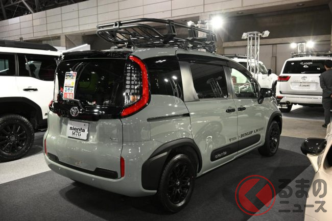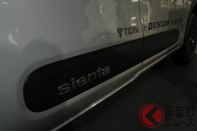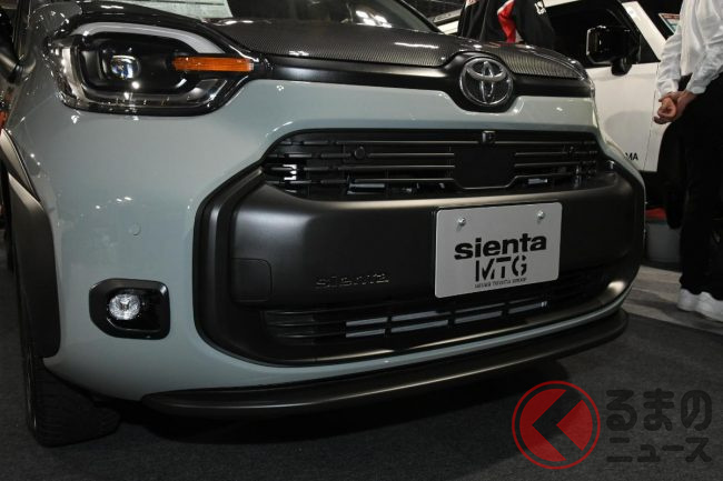 トヨタ「シエンタ“SUV”!?」公開! 車高アゲ&黒感高めで超カッコイイ! タフ感強調のコンパクトミニバン「クロスオーバー」仕様…宮城トヨタが作製