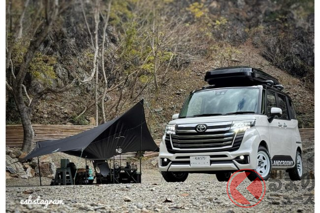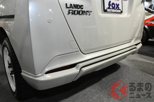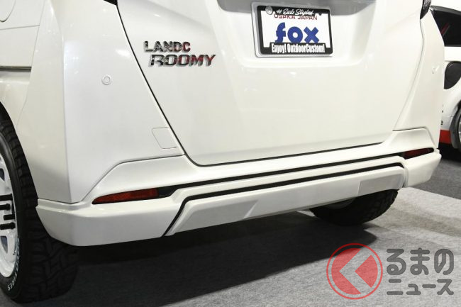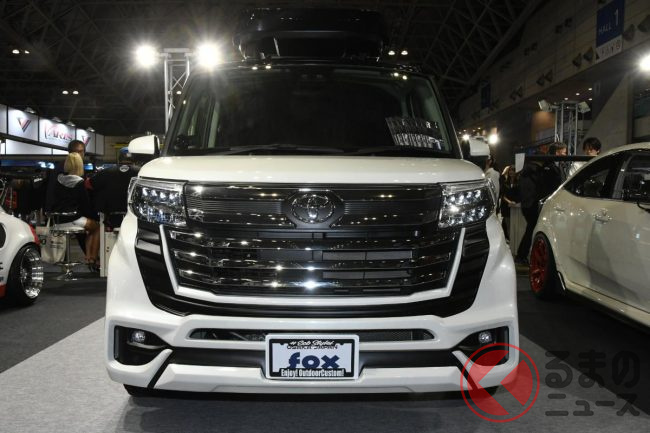 斬新「ランドクルーザー顔“ルーミー”」公開! ド迫力「30mm車高アップ」×車中泊向け“ふかふかマット”も搭載! お隣さんのとは違う「ランドクルーミー」TASで実車展示