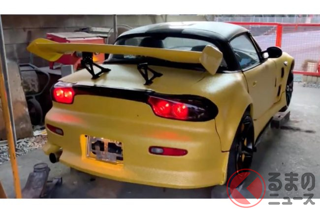 アンダーコートやレストア用水性防水材販売を手掛ける上野美装がスズキの軽オープンカー「カプチーノ」をマツダの2ドアスポーツカー「RX-7(FD3S)」風にカスタムする、“軽 RX-7”を製作する様子をSNSに公開。これについて多くの反響が集まっています。