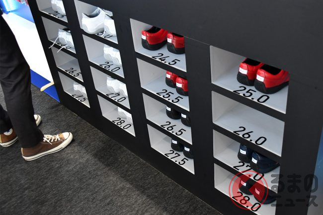 ブース担当者によると、2024年12月の販売開始から多くの反響があり、販売も予想を上回る傾向になっているとのことです。オートサロンのブースでも、3日間を通じて多くの人が足を運び、実際に試し履きしたり、そのまま購入したりする姿が多く見られました。