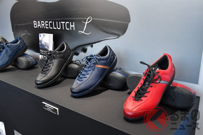 「BARECLUTCH L」は、2022年9月に発売された「BARECLUTCH」の後継モデルで、運転中の快適さと歩行時のクッション性を兼ね備えたソールをもつ魅力をそのままに、上質な天然皮革をアッパー素材に採用し、さらにカラーラインナップも赤やネイビーなど色鮮やかなものを設定し、より高級感のある仕上がりとなっています。
