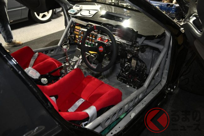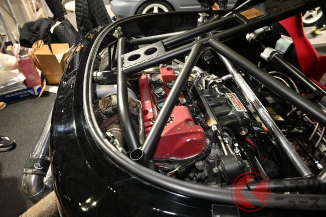 ひとつの車両に2つのエンジンを搭載する構想自体は、20年前から渡辺さんの中にあったそう。20年を経て環境が整い、制作に着手。そして昨年、4WDドリフト走行を目的とした“第一形態”が完成しました。ベース車両にセラを選んだ理由は「格好いいから」なのだとか。
