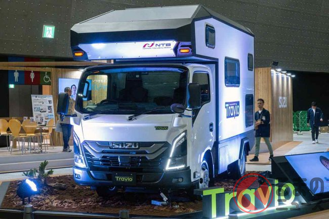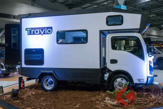 いすゞ新「“7人乗り”トラック」初公開! タフな「カクカクデザイン」×「クール内装」が超カッコイイ! 6人寝られる広々仕様の「車中泊」モデル「Travio EXPEDITION STRIKER“カスタマイズコンセプト”」登場