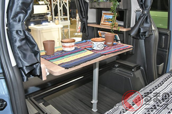 例えば車内の上の部分に棚をつけて使い勝手を良くしていたり、座席シートも普通のシートに近いメッシュ生地を使っていて、純正に近いように作っています。