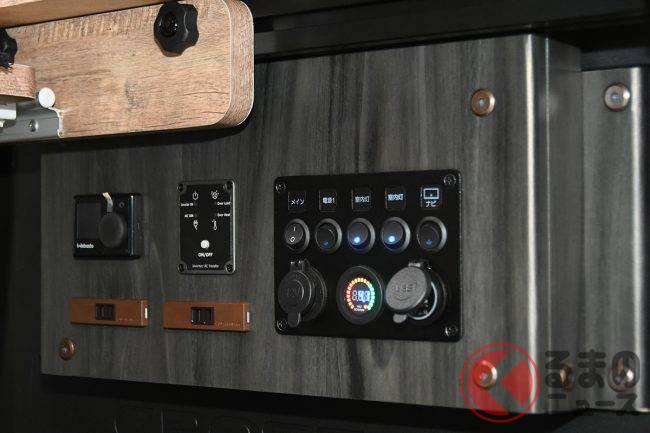 このほか走行充電可能な92AhのサブバッテリーやAC100Vコンセント、USBポート、外部電源コネクターなどをセットした電装キットを標準装備します。