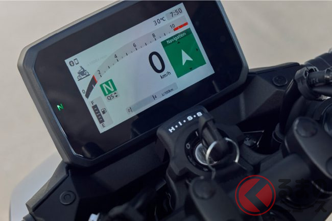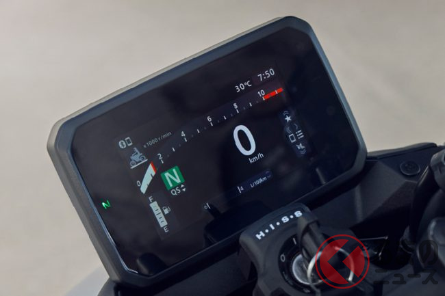 機能面では、5インチのフルカラー液晶メーターが採用され、スマートフォンとの連携や簡易ナビ機能に対応しています。