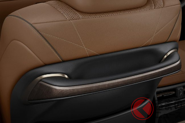 さらに、ショーファーカーとしての用途を想定し、後部座席の乗降をサポートするための「アシストグリップ」も装備されています。
