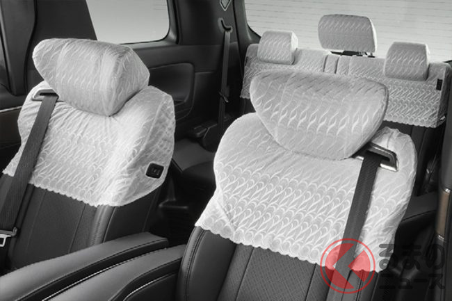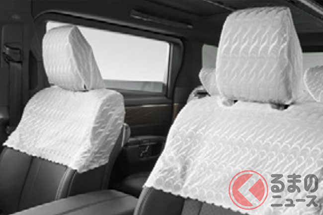 この懐かしい装備は、3代目ヴェルファイアでも「ハーフシートカバー(ラグジュアリータイプ)」として純正アクセサリーにラインナップされています。