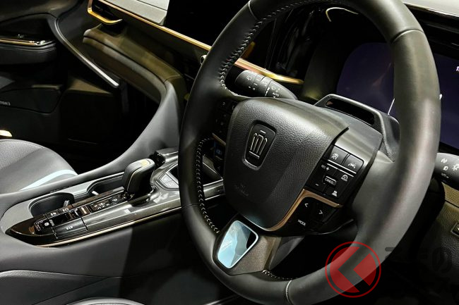 ドライバーの視線移動を最小限に抑える水平基調のメーターディスプレイが採用されており、運転席と助手席では非対称のデザインが施されています。