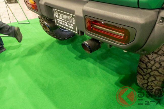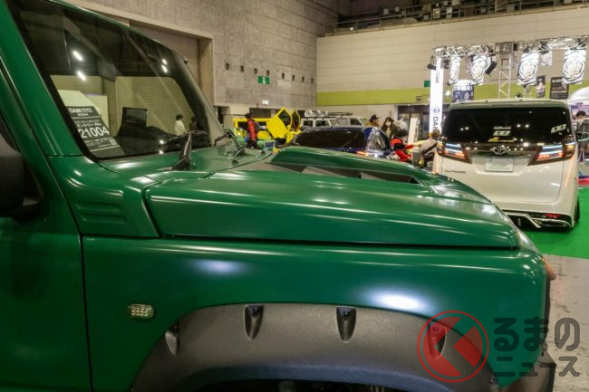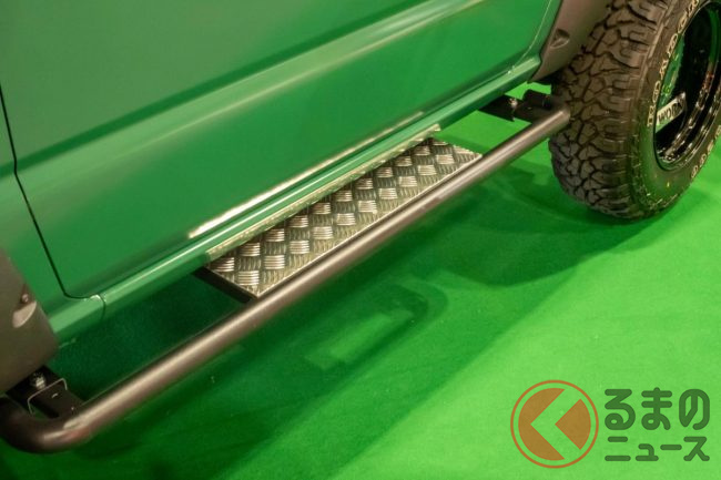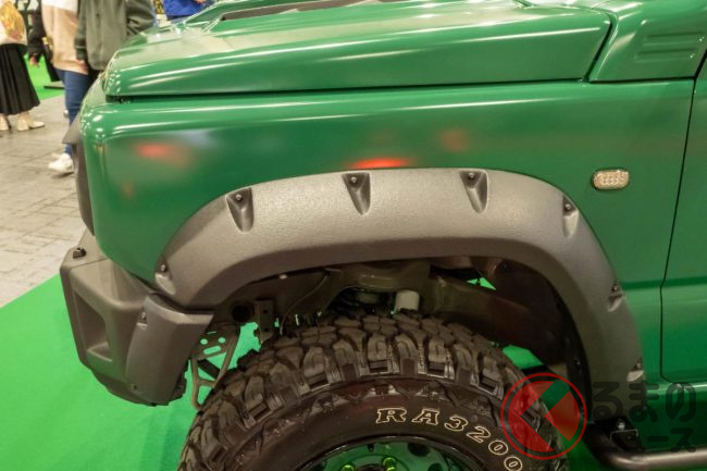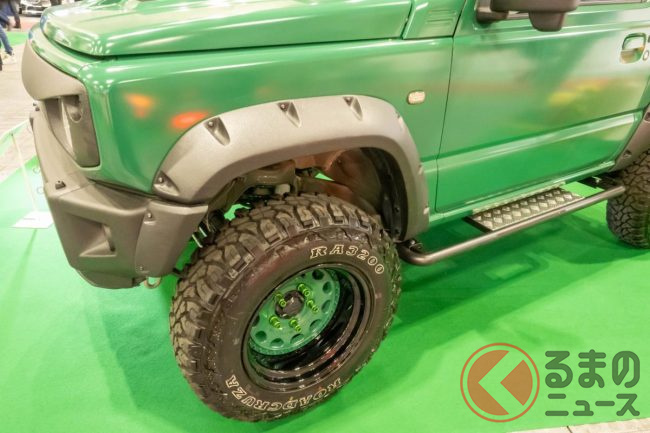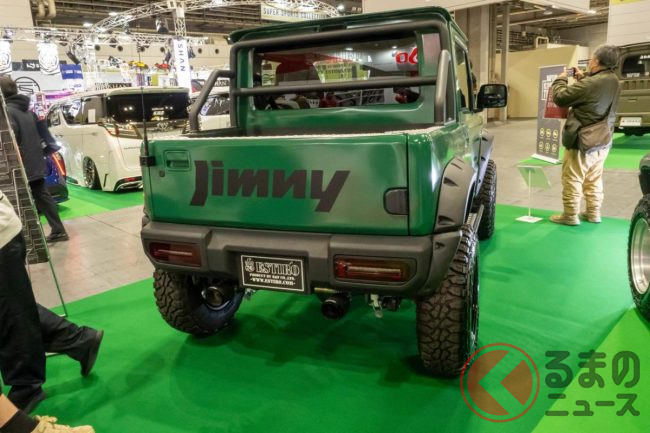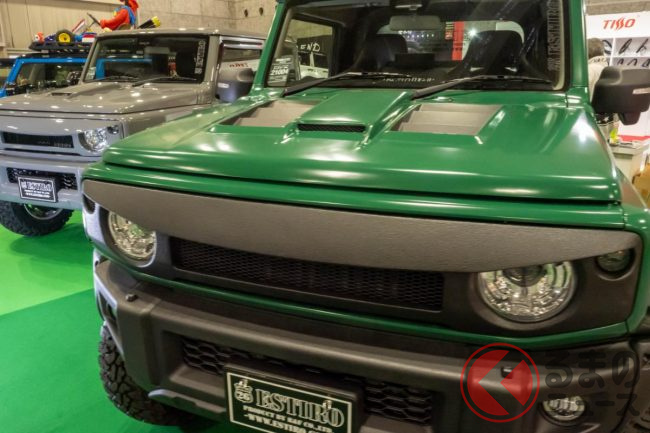 そのESTIROによって展示されていたのがESTIROグリーン チョッパー号。ベースになっているのは、現行型のスズキ「ジムニー」です。