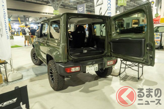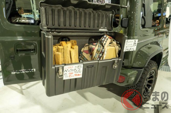 “ジープ顔”の「ジムニー」がスゴイ! バックパックも装備で“めちゃ便利”なAKEaのカスタムモデル! まるで“アメ車”な“スズキ車”とは
