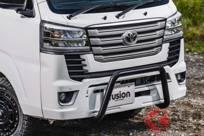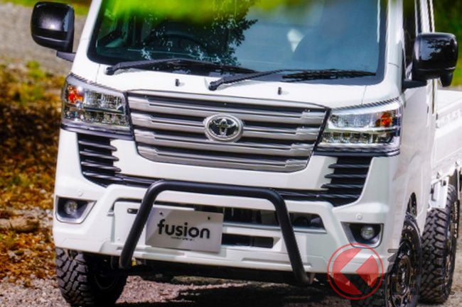 ド迫力の「ランクル軽トラ!?」公開! めちゃ“王者の風格”あふれるダイハツ「ハイゼット」“500ZX”が凄い! フュージョンが開発した「斬新フェイスキット」とは!