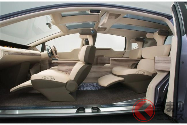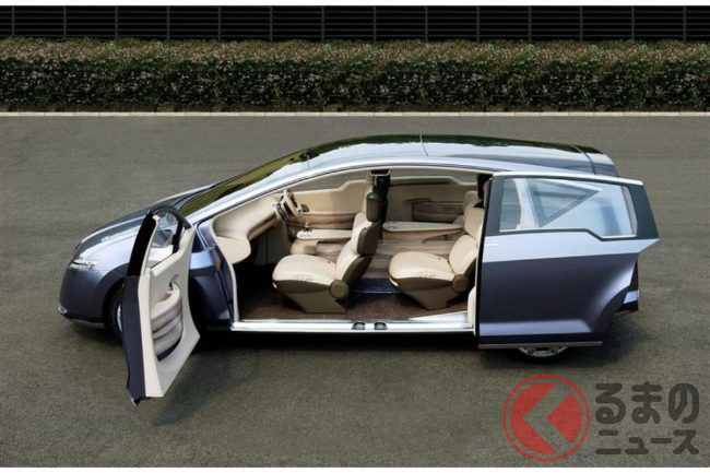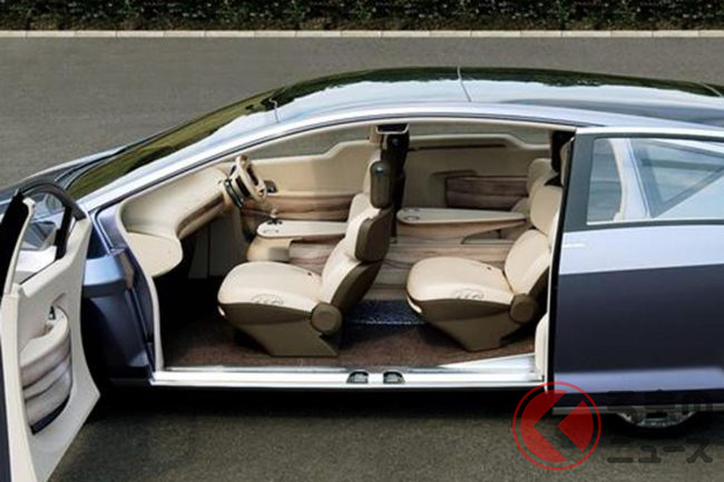 日産の「6人乗りセダン“ミニバン”」がスゴイ! スライドドア&ピラーレスで“超大開口”! 斬新ハンドル&小さめシフトもイイ「セレニティ」とは