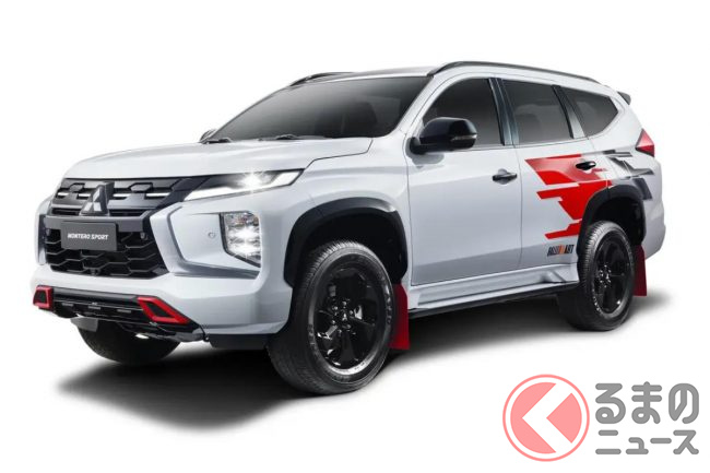 三菱の「新ラリーアートモデル」に反響多数! MT設定&全長4.8m級ボディ採用の「モンテロスポーツ ブラックS」! 赤強調でカッコイイ比国の「7人乗りSUV」が話題に
