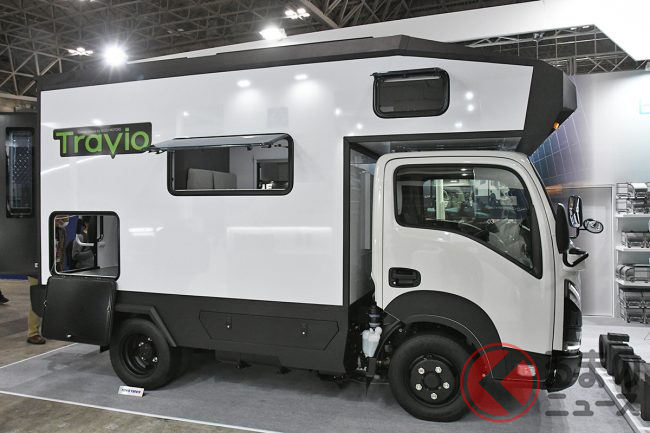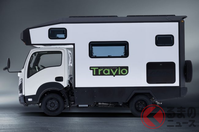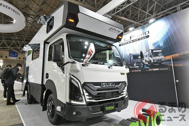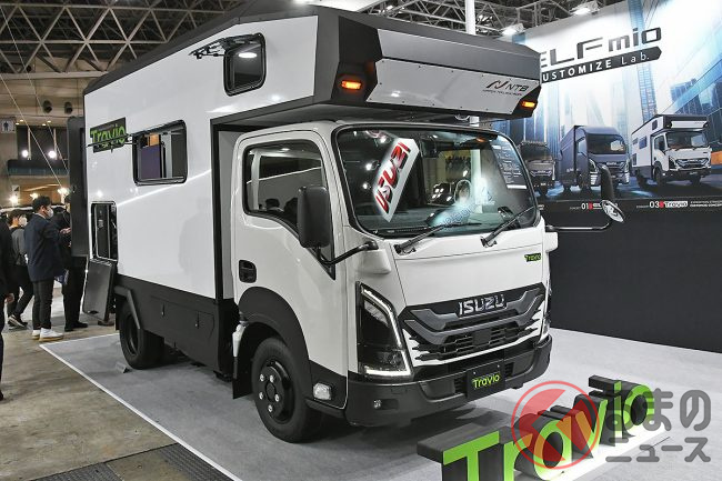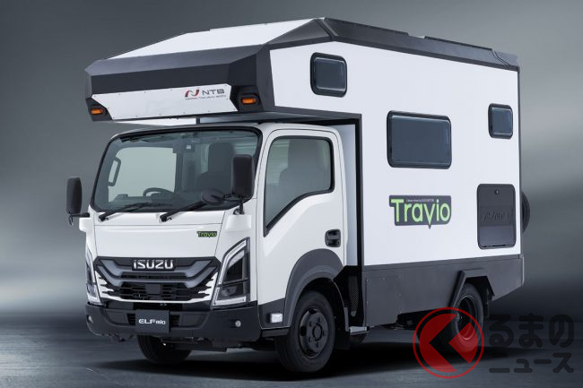 いすゞ新「“7人乗り”トラック」に反響多数! 「クール内装」×「カクカクデザイン」に驚く声も! 6人寝られる広々仕様の「車中泊」モデル「Travio EXPEDITION STRIKER“カスタマイズコンセプト”」に“熱視線”集まる!