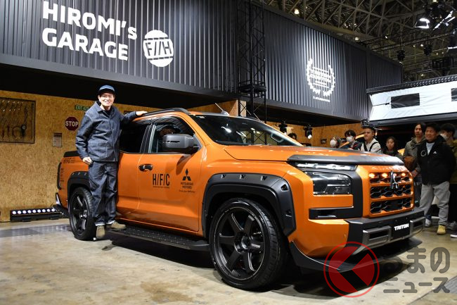 三菱のピックアップトラックをまさかの“車高短”化!? タレントのヒロミさんがTAS2025で公開した愛車「トライトン」を“3人目の息子みたい”だと言う理由