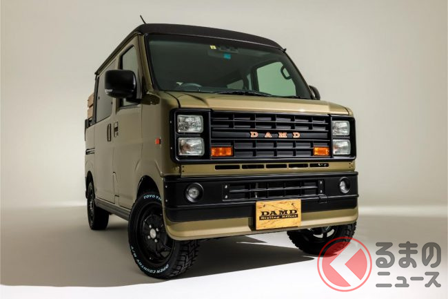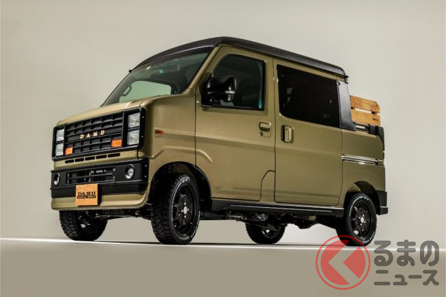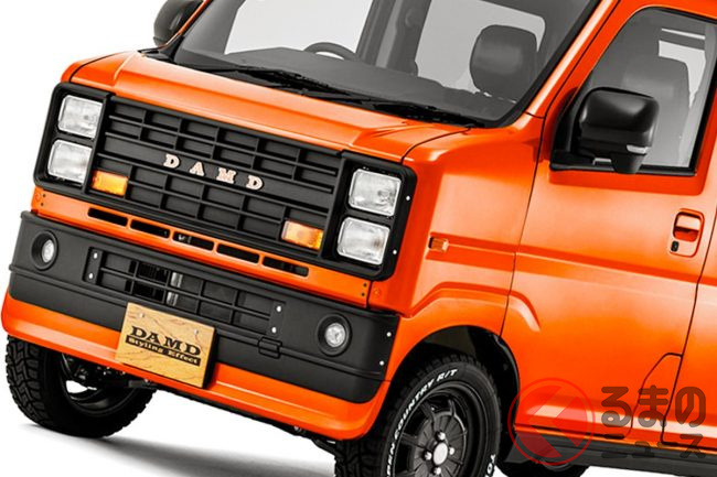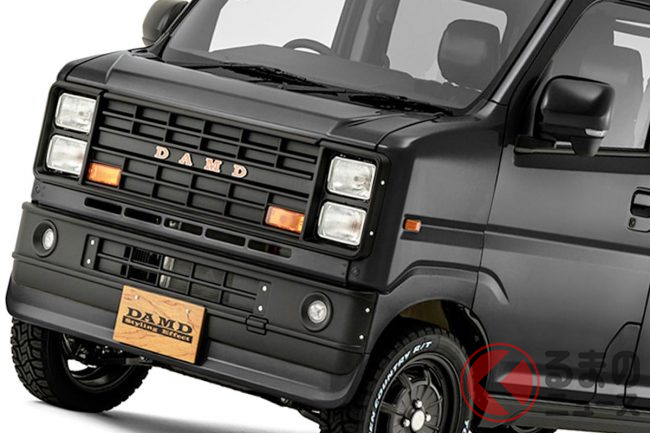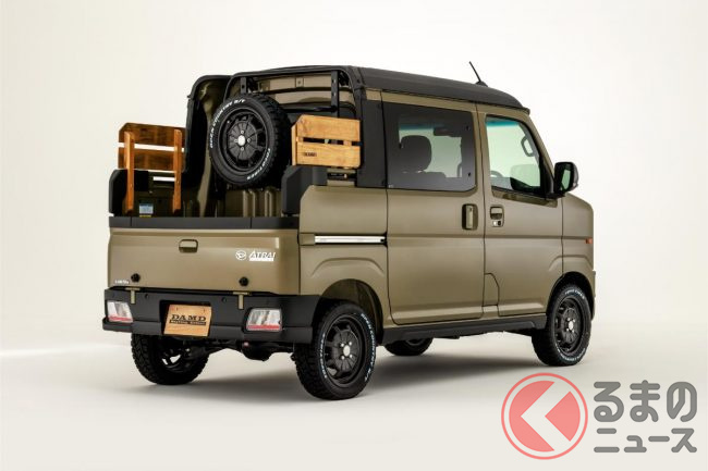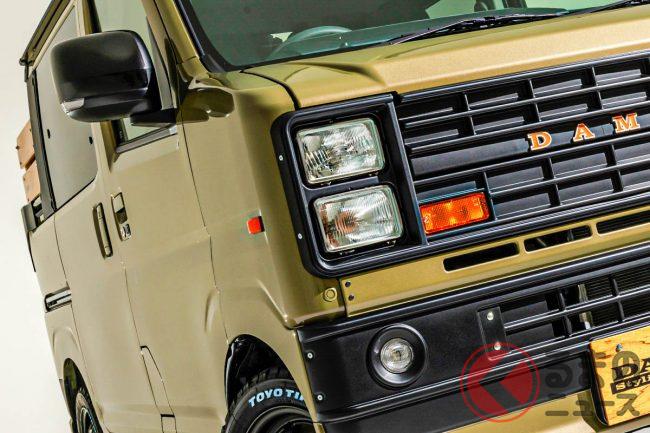 角目4灯の「“4人乗り”軽トラ」あった! “ダイハツ商用車”に斬新すぎる「レトロ顔」採用! DAMD「アトレー・ファズ・デッキバン」が凄い!