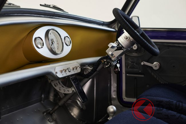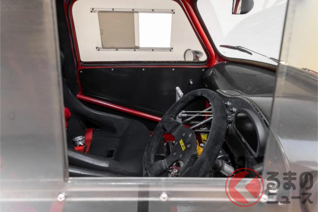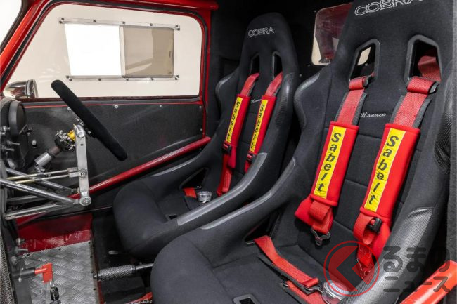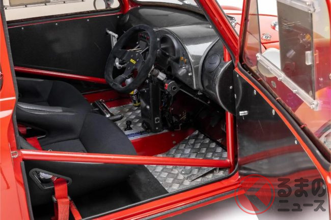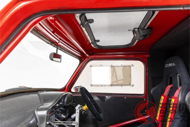内装もレーシングカーさながらの仕様となっており、5点式ハーネス付きのレーシングシート、13インチのコンポモーティブ製ホイール、スパルコ製ステアリングホイール、ロールバー、鋼鉄製のフロアプレートなどが装備されています。
