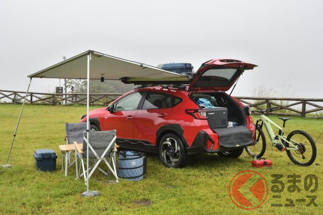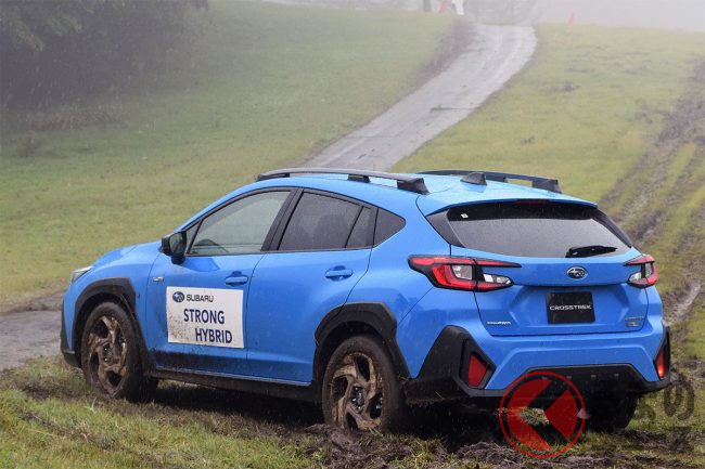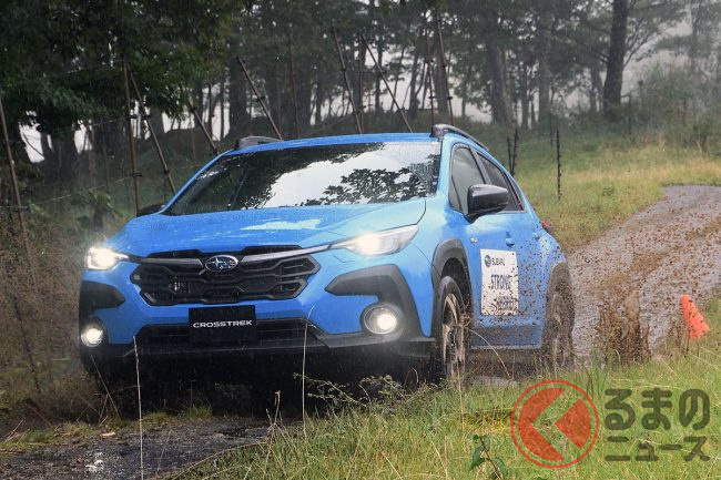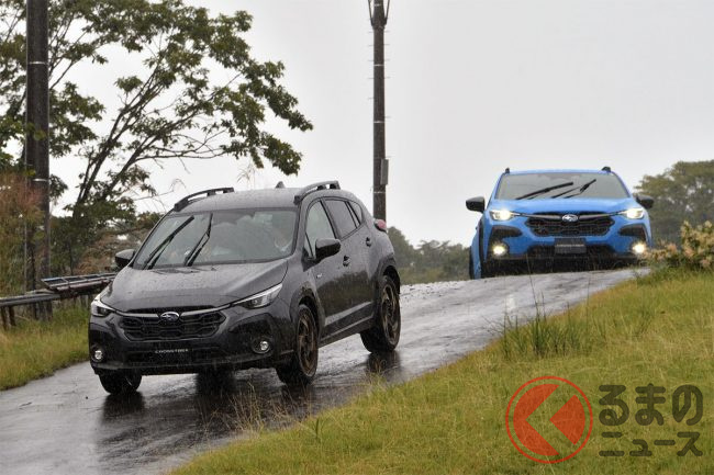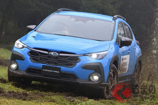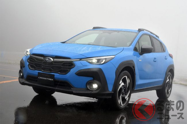 スバル新「SUV」がスゴイ! パワフルな“新ハイブリッド”搭載の「最上級モデル」! タフ顔もカッコイイ「クロストレックe-BOXER」が販売店でも話題に