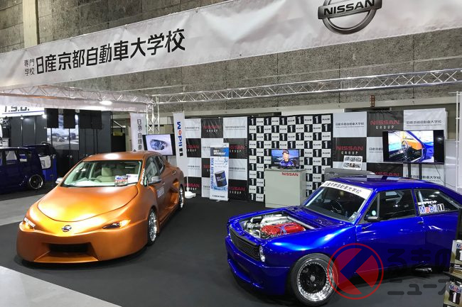 また、自動車専門学校の学生たちが手掛けたカスタムカーも展示されており、なかでも日産京都自動車大学校は大阪オートメッセ2022に、3代目「スカイライン」(通称ハコスカ)の顔をしたSUVを披露していました。