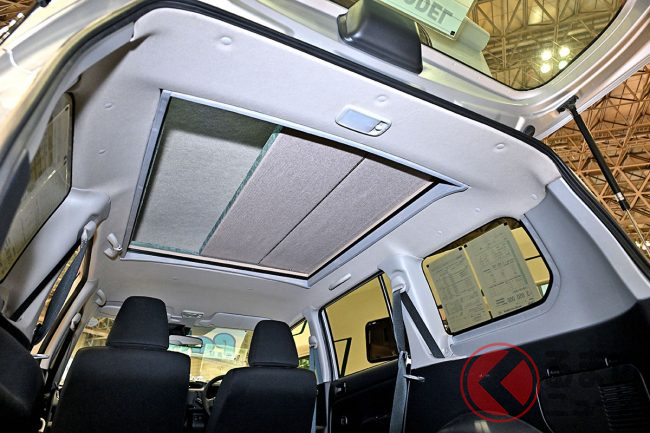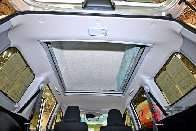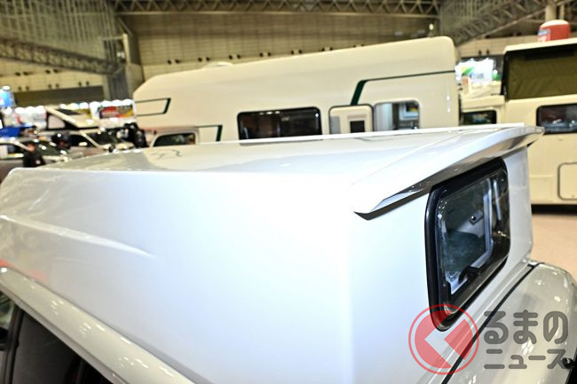 会場の担当者にお話しをうかがうと「全高1980mmなので、ショッピングモールの駐車場に良くある2.1mのバーにも当たりませんし、4ナンバー規格の全高制限に収まるサイズですよ」といいます。