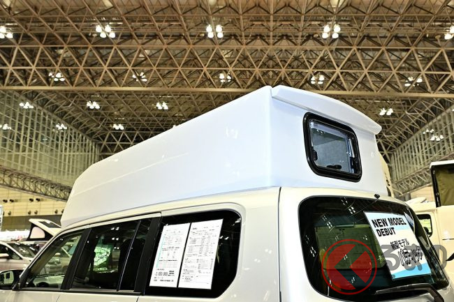 約250万円! 斬新「“2段ベッド式”プロボックス」初公開! 全長4.2m級「ちょうどいいサイズ」×3人寝られる「広々“屋根ウラ部屋”」でめちゃ便利! キャンパー厚木「パティック」幕張に登場