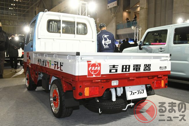 ブランド名の通り、現代と昭和を見事にフュージョンさせたラスターの吉田電器商用車。来年以降はどのようなカラーリングのカスタムカーを展示してくれるのか、期待してしまいますね。
