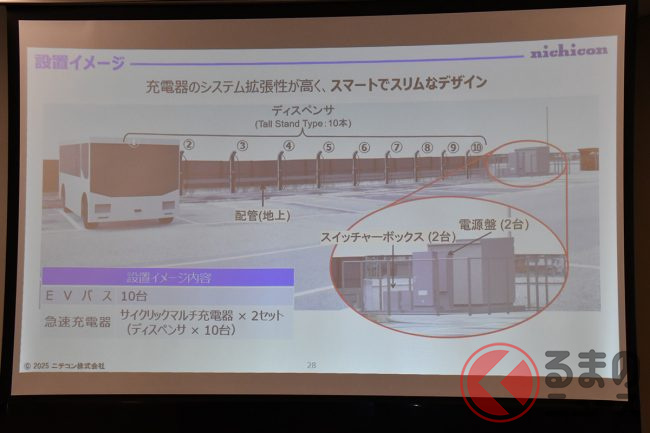 バスやトラックへの急速充電は「イッキに」ではなく「順番に」がポイント! ニチコンが新たに提案する「サイクリックマルチ充電器」発表会