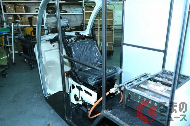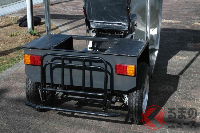 ボディの基本構造はAPトライク125と変わりませんが、後部座席やリアウインドウなどが取り除かれ、代わりに広々としたスペースを獲得しています。