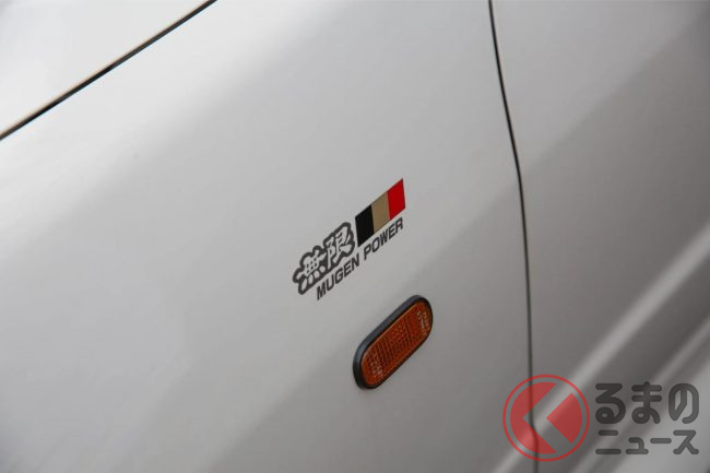 ホンダ車のアフターパーツやレース車両の開発を行う無限(現:M-TEC)が手掛けたこれらのエアロパーツは、現在は絶版となってしまった貴重なアイテムです。またこのクルマにはエアロパーツのほか、吸排気系などにも無限製パーツが組み込まれている様子です。