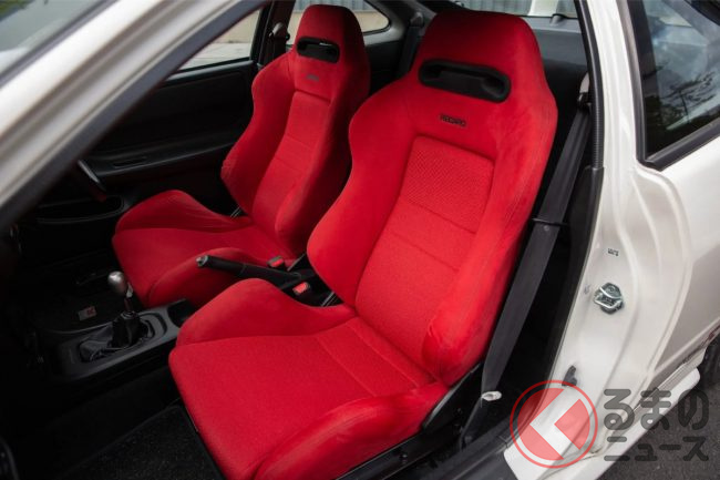 レアなパーツもさることながら、車両自体もきわめて良好なコンディション。走行距離はわずか2万4000キロです。手入れを怠ると黄変など劣化しやすい「チャンピオンシップホワイト」のボディカラーはツヤを保っており、専用の真っ赤なRECARO製バケットシートも退色はごくわずかです。