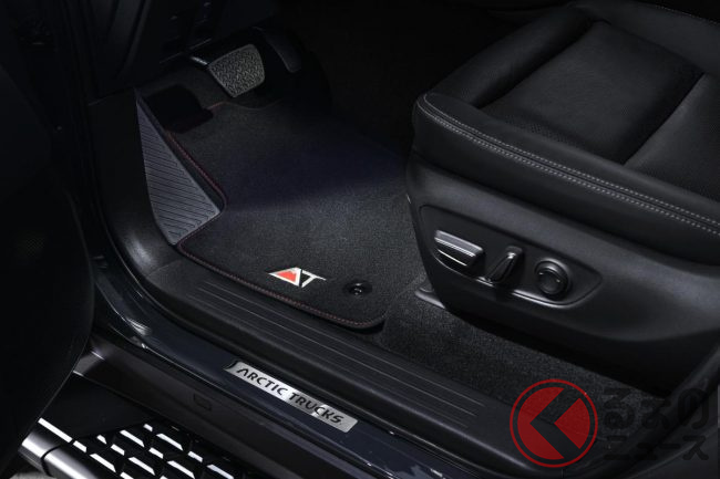 外装は専用アイテムを多く装備していますが、内装はスカッフプレートとフロアマットがアークティックトラック製のものになっているぐらいで、変更は最小限にとどまっています。