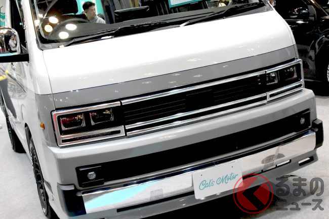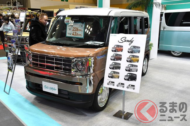 古き良きカリフォルニア西海岸をイメージとした「Cal’sMotor」のラインナップは、トヨタ ハイエースをベースとした「カリカ」、トヨタ ライズ/ダイハツ ロッキーがベースの「ハバナ」、日産 NV200バネットがベースの「ソノバ」、スズキ ジムニー/ジムニーシエラをベースとした「ベアス」「ベアスプラス」、またスズキ スペーシアベースの「サンディ」、ダイハツ タフトベースの「ルイス」なども最近追加されています。ブースにはラインナップ一同が勢ぞろいで展示されていました。