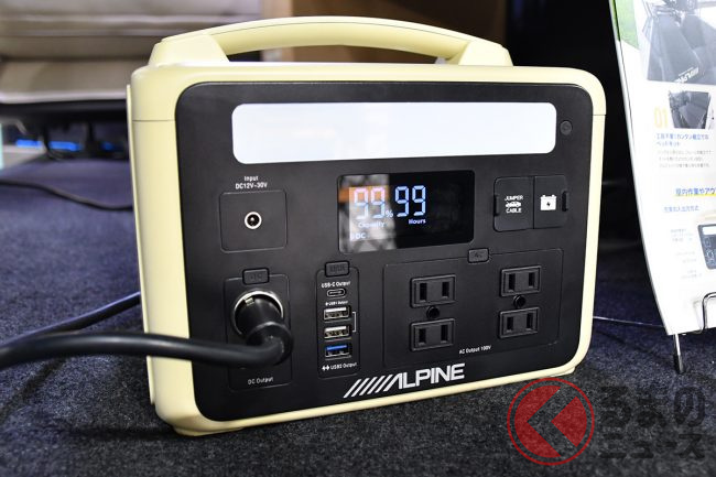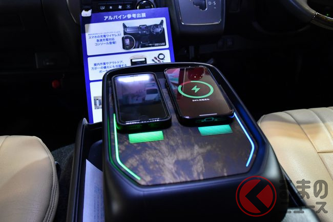 また同ブースでは参考出品として、後付け可能な車載用360度カメラや、アルプスアルパインの技術を用いたハイエース専用コンソール取り付け型ワイヤレスW充電器、非常時のジャンプスターター機能を搭載したポータブル電源など、現在開発中のアルパイン製品もいち早く実際に見ることができます。