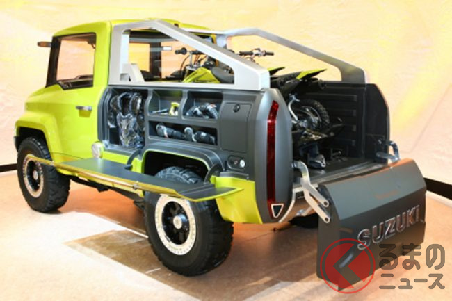 全長3.7m! タフすぎるスズキ「斬新小型トラック」があった! 1.4Lエンジンに「カクカク」デザイン×画期的な「すごい荷台」を搭載! 「X-HEAD」コンセプトは今欲しい1台