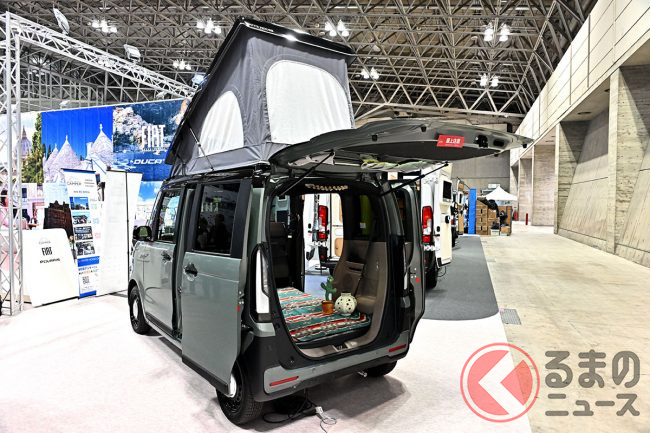 大手キャンピングカービルダー「ホワイトハウスキャンパー」(愛知県東郷町)は同イベントに、ホンダの人気軽スーパーハイトワゴン「N-BOX」をベースにしたキャンピングカーを出展し、来場者の注目を集めていましたが、どのようなクルマなのでしょうか。