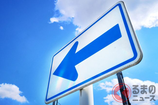 知らないと「免許返納」推奨!? 謎の「白地に青矢印」に“反響”多数! 「実は見たことない」「気づかず止まって怒られた」との意見も! 「一方通行」とは違う「ちょっと珍しい標示」に集まる意見とは
