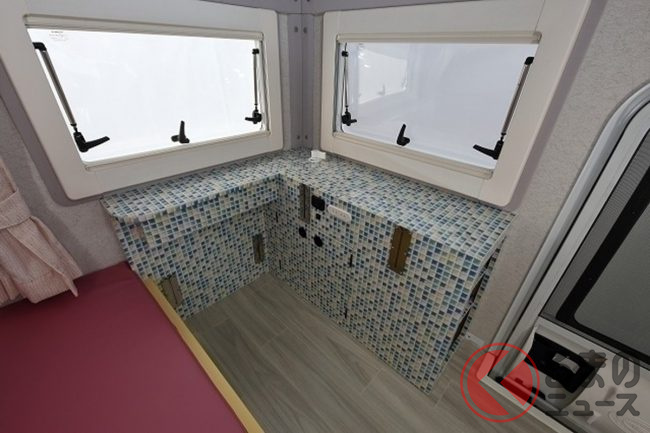 ボディ左サイドにはアウトドアカウンターを設置するなど、現地での遊びの使い勝手も提案しています。