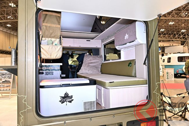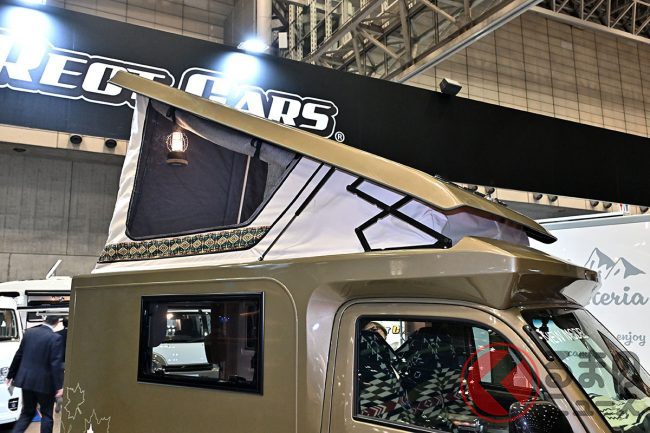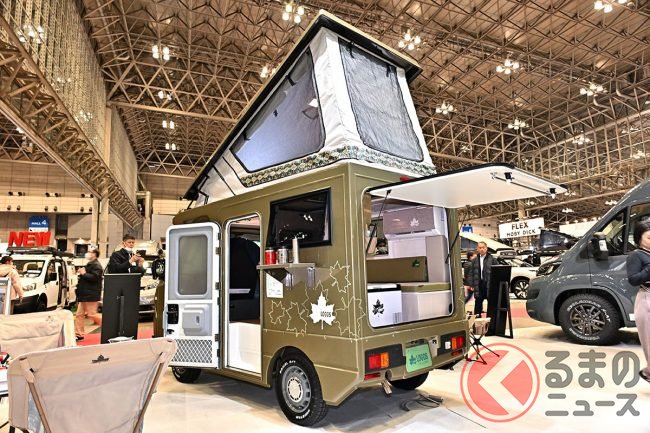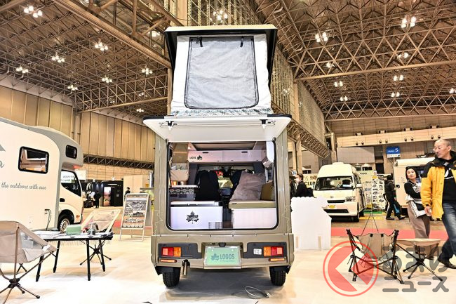 キャンピングカーイベント「ジャパンキャンピングカーショー(JCCS)2025」でダイレクトカーズは、人気アウトドアブランドとコラボを組んだ新型軽キャンピングカーを出展しました。どのようなクルマなのでしょうか。