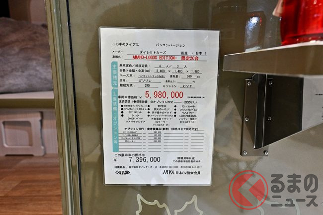 なおアマホ ロゴス エディションは、限定20台という少数販売です。ダイレクトカーズによると、2025年1月18日の報道発表以降、非常に注目を集めており、すでに問い合わせが多く来ているとのこと。