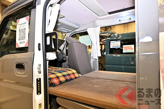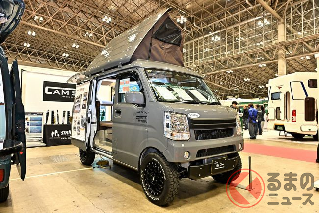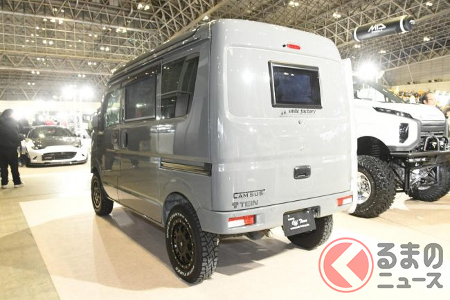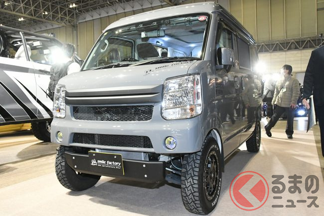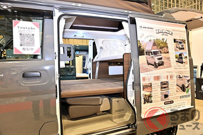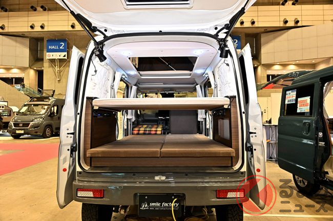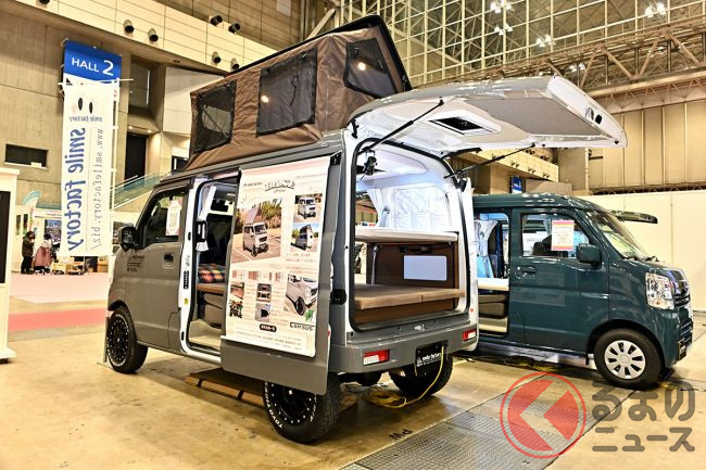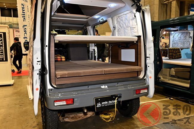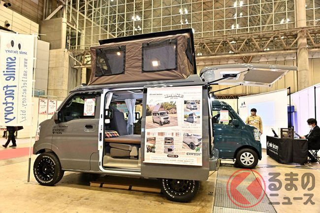 キャンピングカーイベント「ジャパンキャンピングカーショー(JCCS)2025」でSMILEFACTORYは、軽バン「エブリイ」をベースにしたキャンピングカーを出展しました。他とは違う個性があるといいますが、どのようなクルマなのでしょうか。
