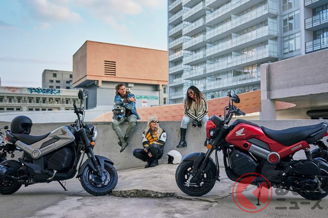 約30万円! ホンダ「ミニモト」発表! 「HETエンジン」×「Vマチック」搭載でめちゃ楽しそう! スクーター感覚で乗れるバイク「NAVI」米国に登場