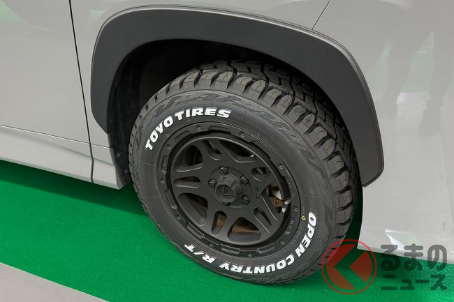 スズキ「ジムニー」などのカスタムパーツを得意とする同社は、都会的なヴォクシーを レトロ感漂うタフな仕様に変身させています。