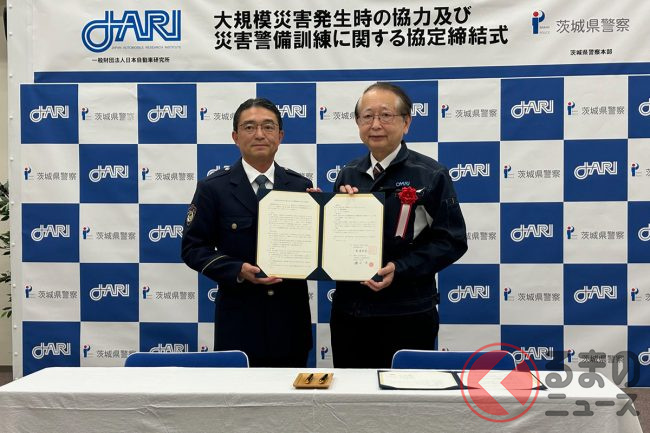 そんなJARIで2月14日、茨城県警察本部・本部長の滝澤幹滋氏と、水戸市消防局 消防局長の大信成人氏が参加し、それぞれJARIと連携協定を締結。