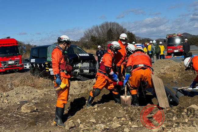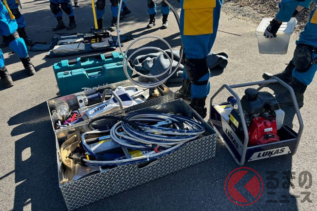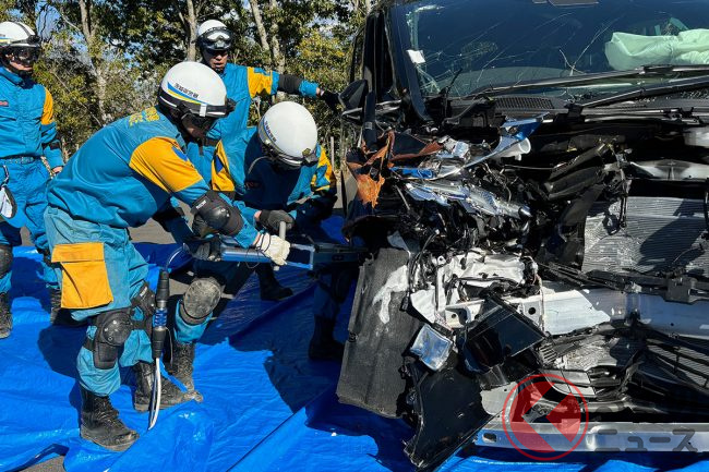 災害や事故でクルマが巻き込まれた状態を想定した、リアルで大規模な救助訓練が行われました。