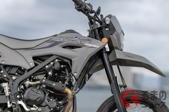 一方で、エンジンやフレームはKLX230と共通のものを採用。232ccの空冷4ストローク単気筒エンジンは低中速域でのトルクを重視したセッティングとなっており、軽量な車体と相まって、街乗りやツーリングでの扱いやすさが特徴です。