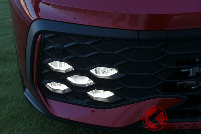 エクステリアではベースモデル同様にヘッドライトとバンパーが変更されましたが、ロアグリル周辺は、ハニカムデザインが引き立つスポーティな雰囲気に一新。イルミネーション付きVWエンブレムと合わせ、さらに精悍な印象になっています。