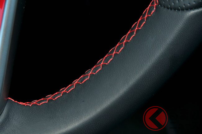 大径の赤いブレーキキャリパーも強調され、ハイパフォーマンス性能の期待を高めてくれるデザインです。ただし過激さは少なく、ボディカラーの「キングズレッド」もややダークな雰囲気のメタリックで、ちょっと大人なスポーツカーといった印象です。