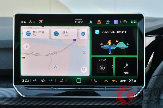 12.9インチの大型ディスプレイは、照明付きのタッチスライドバーによる直感的なエアコン温度調整や音量調整が可能となったほか、より自然な会話で各種の調整や設定ができる「IDAボイスアシスタント」を採用しています。