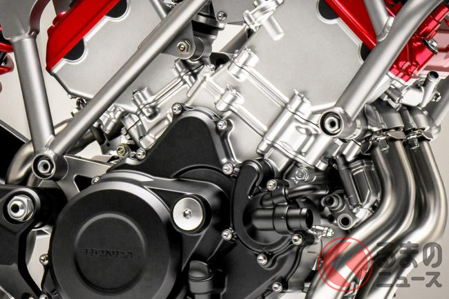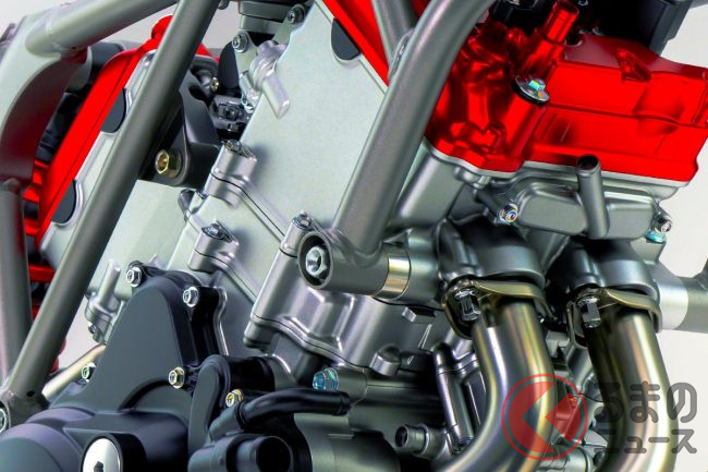 ホンダが世界初の「新型エンジン」発表! 伝統の「赤ヘッド」に“電動過給器”搭載した「すごい内燃機関」に大注目! 超進化した新型「3気筒エンジン」は“大型バイク”から搭載へ!